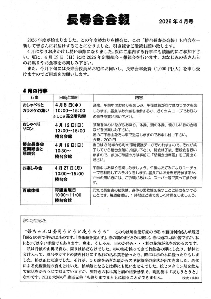 4月 長寿会活動