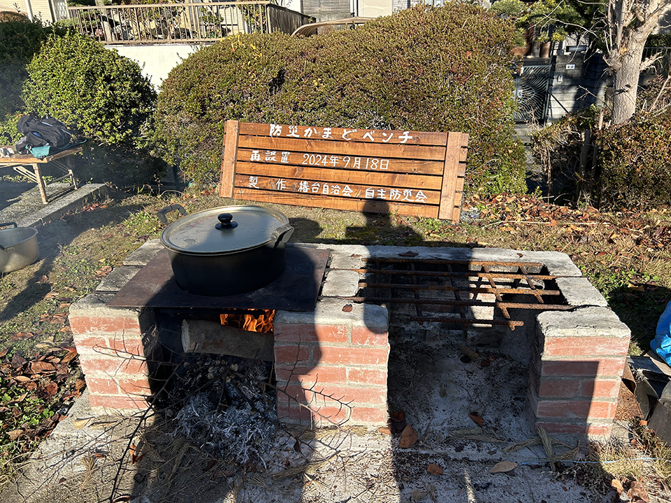 先ずはかまどベンチで火をおこし、お湯を沸かします。